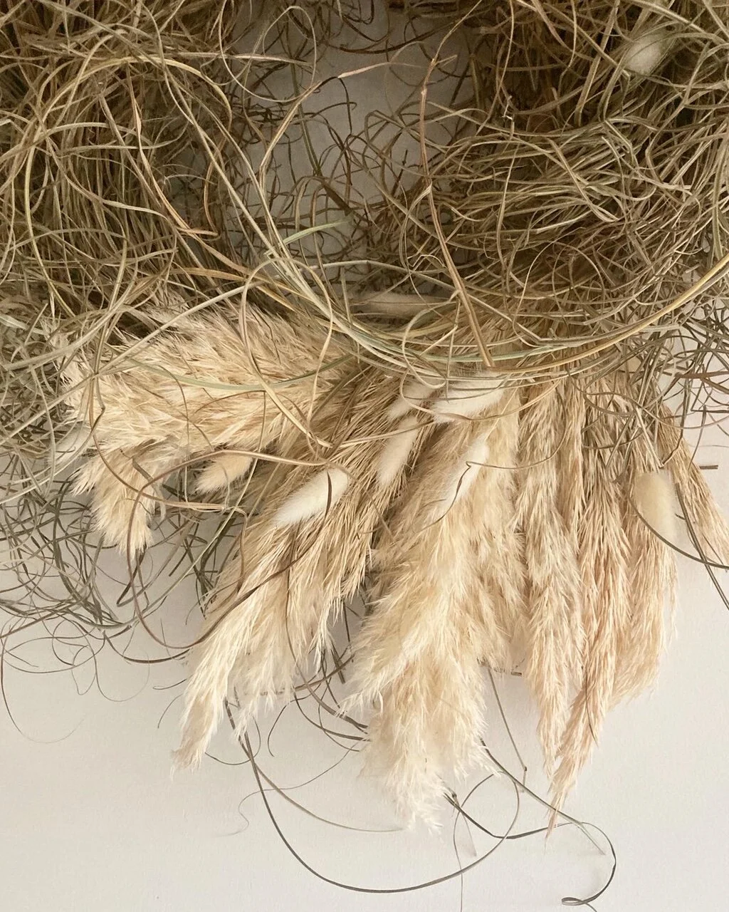 Each wreath and floral cloud is crafted from carefully selected botanicals, making it unique. We honor the natural shape of the materials, which are thoughtfully sourced. Quantities and styles are limited each season, reflecting the success of the farmers' growing season.